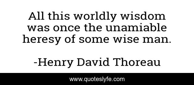 This page presents the quote "All this worldly wisdom was once the unamiable heresy of some wise man.". Author of this quote is Henry David Thoreau. This quote is about wise, wise man, man,.