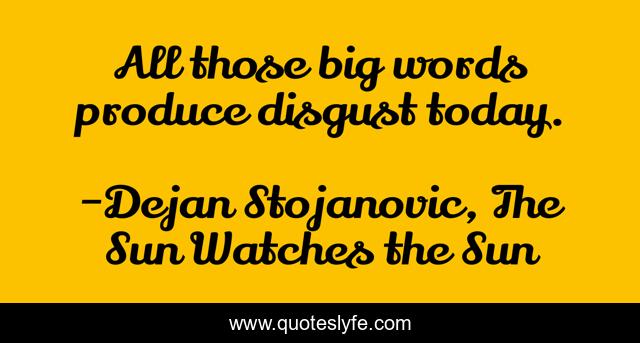 "Dejan Stojanovic, The Sun Watches the Sun Quotes." Quoteslyfe.com, 2025. Tue. 09 Dec. 2025. <https://www.quoteslyfe.com/quote/All-those-big-words-produce-disgust-today-112390>.