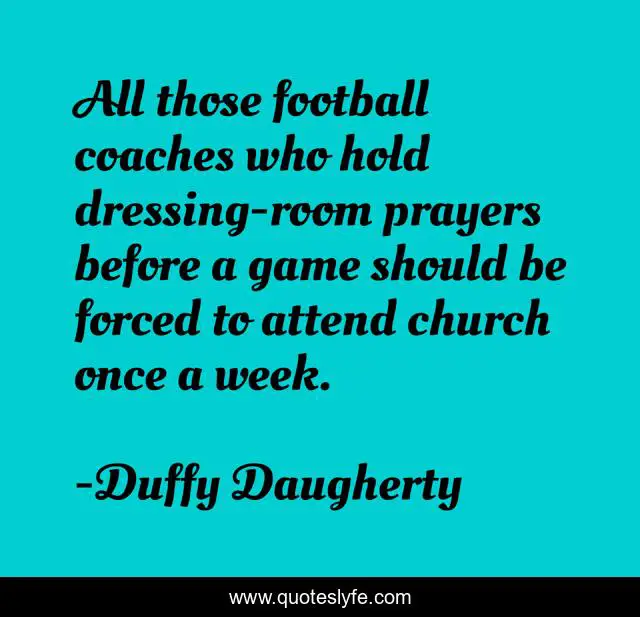 This page presents the quote "All those football coaches who hold dressing-room prayers before a game should be forced to attend church once a week.". Author of this quote is Duffy Daugherty. .
