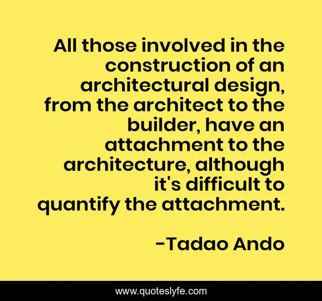 This page presents the quote "All those involved in the construction of an architectural design, from the architect to the builder, have an attachment to the architecture, although it's difficult to quantify the attachment.". Author of this quote is Tadao Ando. This quote is about construction, design,.
