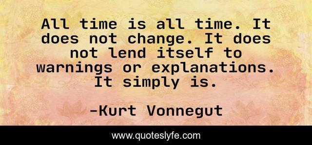 This page presents the quote "All time is all time. It does not change. It does not lend itself to warnings or explanations. It simply is.". Author of this quote is Kurt Vonnegut. This quote is about itself, time,.