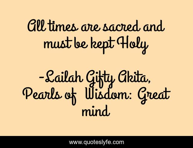 "Lailah Gifty Akita, Pearls of Wisdom: Great mind Quotes." Quoteslyfe.com, 2025. Fri. 05 Dec. 2025. <https://www.quoteslyfe.com/quote/All-times-are-sacred-and-must-be-98667>.