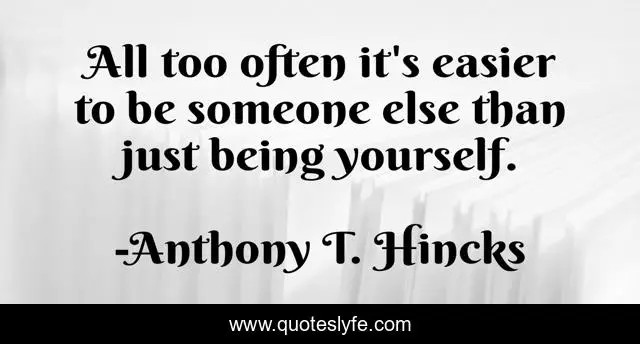 This page presents the quote "All too often it's easier to be someone else than just being yourself.". Author of this quote is Anthony T. Hincks. This quote is about someone, being, philosophy, yourself, someone-else, another-person,.