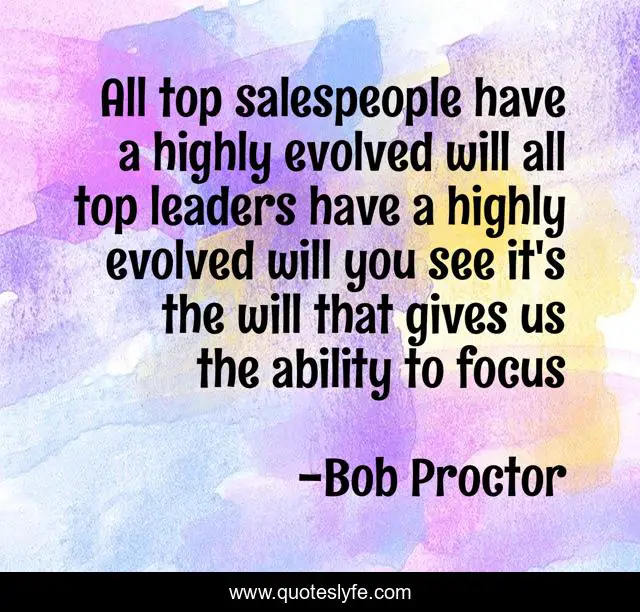 This page presents the quote "All top salespeople have a highly evolved will all top leaders have a highly evolved will you see it's the will that gives us the ability to focus". Author of this quote is Bob Proctor. This quote is about personal-growth, self-growth, personal-improvement, self-improvement, self-help, personal-development,.