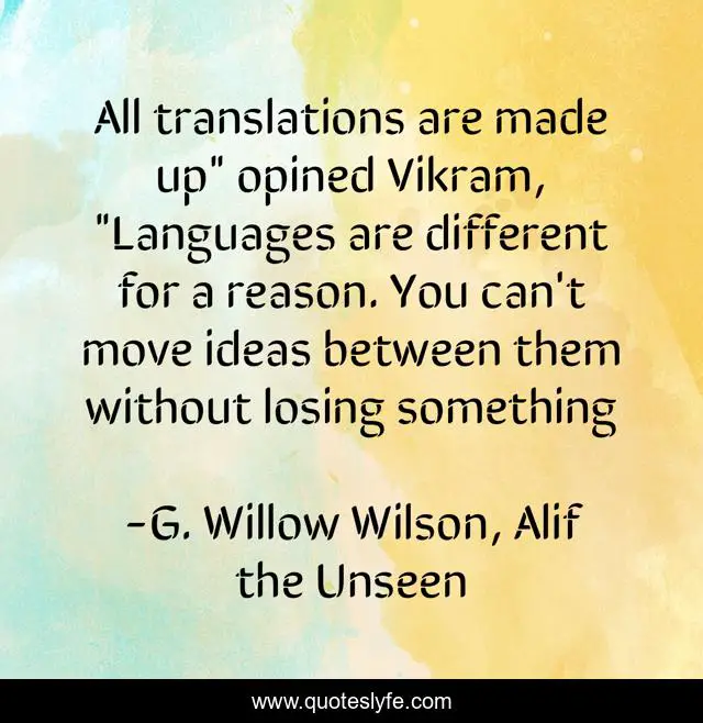 "G. Willow Wilson, Alif the Unseen Quotes." Quoteslyfe.com, 2025. Tue. 09 Dec. 2025. <https://www.quoteslyfe.com/quote/All-translations-are-made-up-opined-Vikram-158967>.