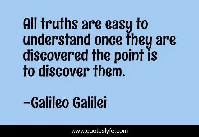 "Galileo Galilei Quotes." Quoteslyfe.com, 2025. Fri. 05 Dec. 2025. <https://www.quoteslyfe.com/quote/All-truths-are-easy-to-understand-once-309852>.