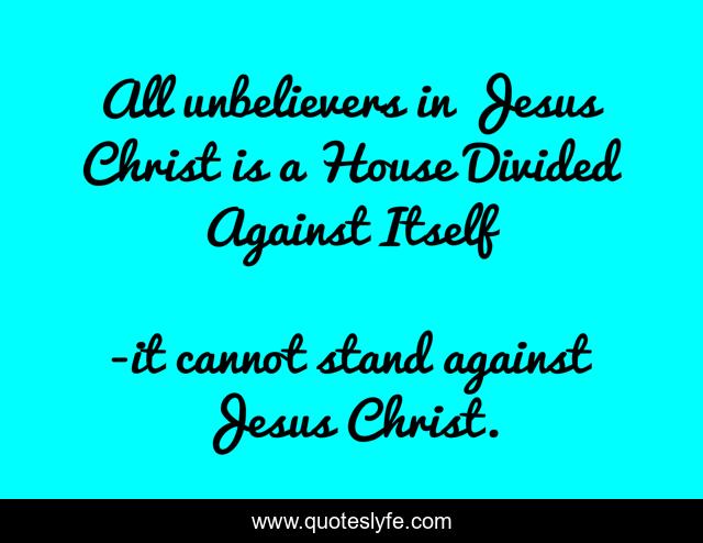This page presents the quote "All unbelievers in Jesus Christ is a House Divided Against Itself". Author of this quote is it cannot stand against Jesus Christ.. This quote is about felix wantang, spiritual wisdom from jesus christ: volume one,.