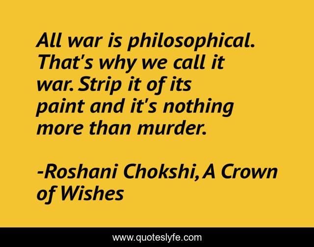 This page presents the quote "All war is philosophical. That's why we call it war. Strip it of its paint and it's nothing more than murder.". Author of this quote is Roshani Chokshi, A Crown of Wishes. This quote is about meaning, murder, war,.