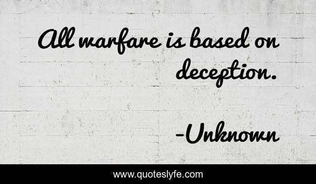 "Unknown Quotes." Quoteslyfe.com, 2025. Sat. 06 Dec. 2025. <https://www.quoteslyfe.com/quote/All-warfare-is-based-on-deception-285623>.