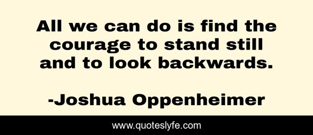 This page presents the quote "All we can do is find the courage to stand still and to look backwards.". Author of this quote is Joshua Oppenheimer. This quote is about look, find, stand,.