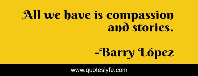 "Barry López Quotes." Quoteslyfe.com, 2025. Fri. 05 Dec. 2025. <https://www.quoteslyfe.com/quote/All-we-have-is-compassion-and-stories-135116>.