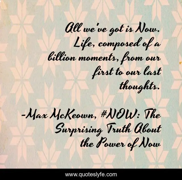 "Max McKeown, #NOW: The Surprising Truth About the Power of Now Quotes." Quoteslyfe.com, 2025. Mon. 08 Dec. 2025. <https://www.quoteslyfe.com/quote/All-we-ve-got-is-Now-Life-103348>.
