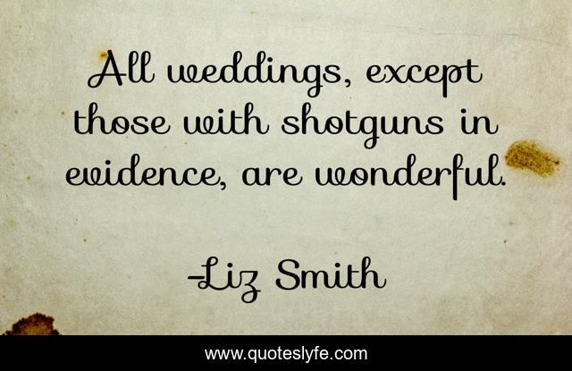 This page presents the quote "All weddings, except those with shotguns in evidence, are wonderful.". Author of this quote is Liz Smith. This quote is about wonderful, evidence,.