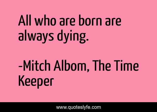"Mitch Albom, The Time Keeper Quotes." Quoteslyfe.com, 2025. Tue. 09 Dec. 2025. <https://www.quoteslyfe.com/quote/All-who-are-born-are-always-dying-105942>.