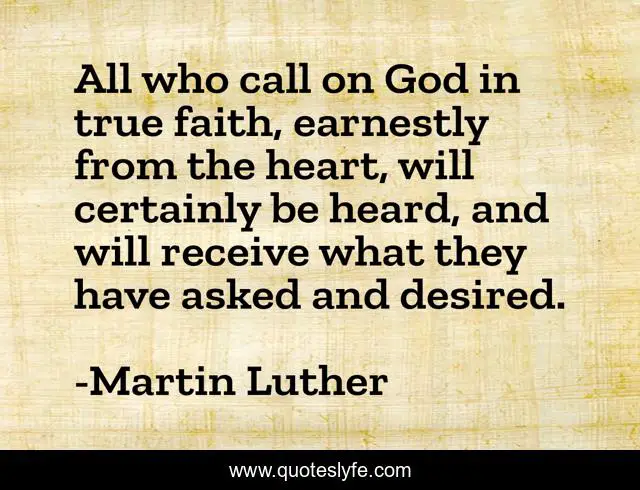 This page presents the quote "All who call on God in true faith, earnestly from the heart, will certainly be heard, and will receive what they have asked and desired.". Author of this quote is Martin Luther. .
