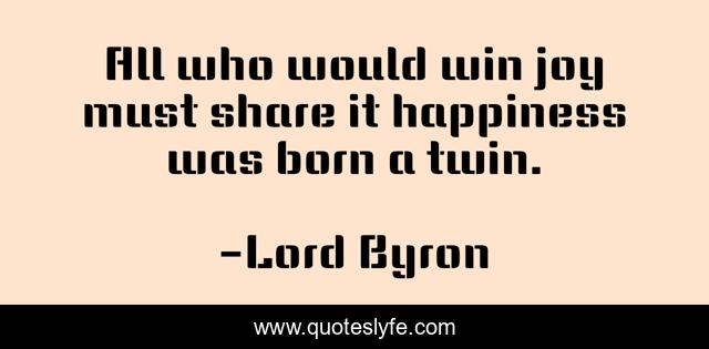 This page presents the quote "All who would win joy must share it happiness was born a twin.". Author of this quote is Lord Byron. .