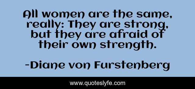This page presents the quote "All women are the same, really: They are strong, but they are afraid of their own strength.". Author of this quote is Diane von Furstenberg. This quote is about strong, same, women,.