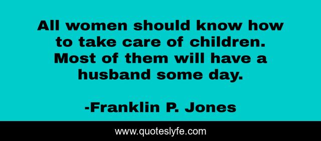 This page presents the quote "All women should know how to take care of children. Most of them will have a husband some day.". Author of this quote is Franklin P. Jones. This quote is about children, husband, day,.