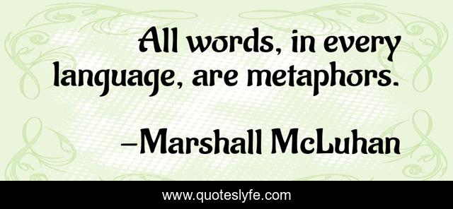 This page presents the quote "All words, in every language, are metaphors.". Author of this quote is Marshall McLuhan. This quote is about meaning, metaphor, language,.