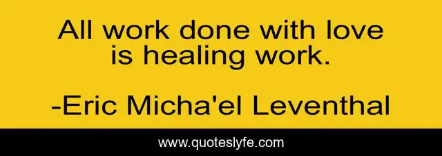 "Eric Micha'el Leventhal Quotes." Quoteslyfe.com, 2025. Sat. 06 Dec. 2025. <https://www.quoteslyfe.com/quote/All-work-done-with-love-is-healing-135356>.