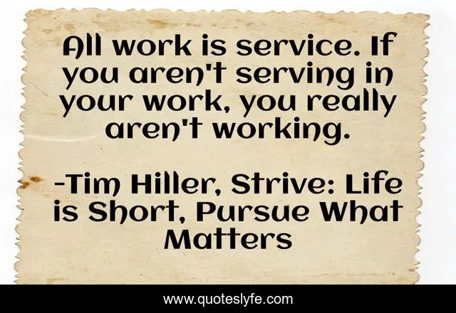 "Tim Hiller, Strive: Life is Short, Pursue What Matters Quotes." Quoteslyfe.com, 2025. Sat. 06 Dec. 2025. <https://www.quoteslyfe.com/quote/All-work-is-service-If-you-aren-195916>.