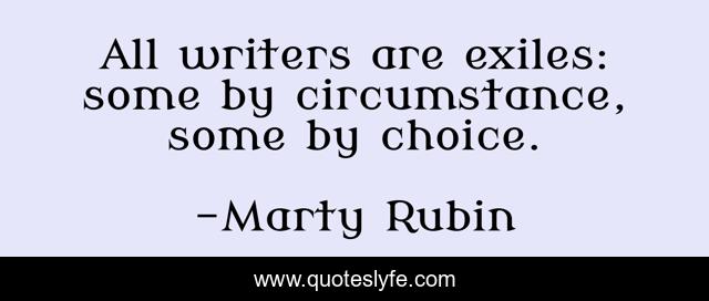 "Marty Rubin Quotes." Quoteslyfe.com, 2025. Mon. 08 Dec. 2025. <https://www.quoteslyfe.com/quote/All-writers-are-exiles-some-by-circumstance-150766>.