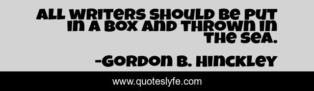 This page presents the quote "All writers should be put in a box and thrown in the sea.". Author of this quote is Gordon B. Hinckley. This quote is about writers, humor, writing,.