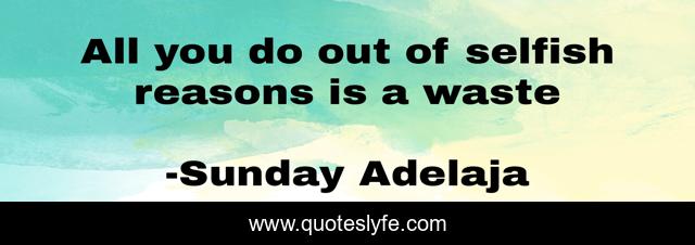 This page presents the quote "All you do out of selfish reasons is a waste". Author of this quote is Sunday Adelaja. This quote is about love, people, money, principles, selflessness, employment, worship, impact, living,.