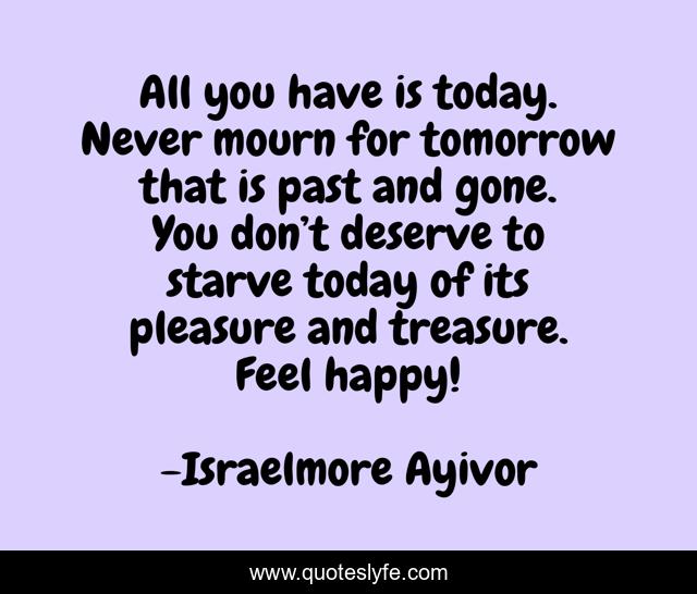 "Israelmore Ayivor Quotes." Quoteslyfe.com, 2025. Sat. 06 Dec. 2025. <https://www.quoteslyfe.com/quote/All-you-have-is-today-Never-mourn-129371>.