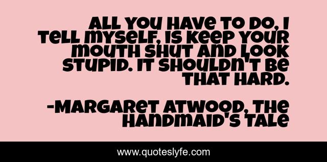 This page presents the quote "All you have to do, I tell myself, is keep your mouth shut and look stupid. It shouldn't be that hard.". Author of this quote is Margaret Atwood, The Handmaid's Tale. This quote is about humor, feminism,.