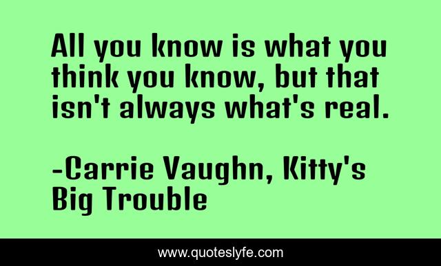 This page presents the quote "All you know is what you think you know, but that isn't always what's real.". Author of this quote is Carrie Vaughn, Kitty's Big Trouble. This quote is about life, life-and-living, truthful, truth-of-life, truth,.