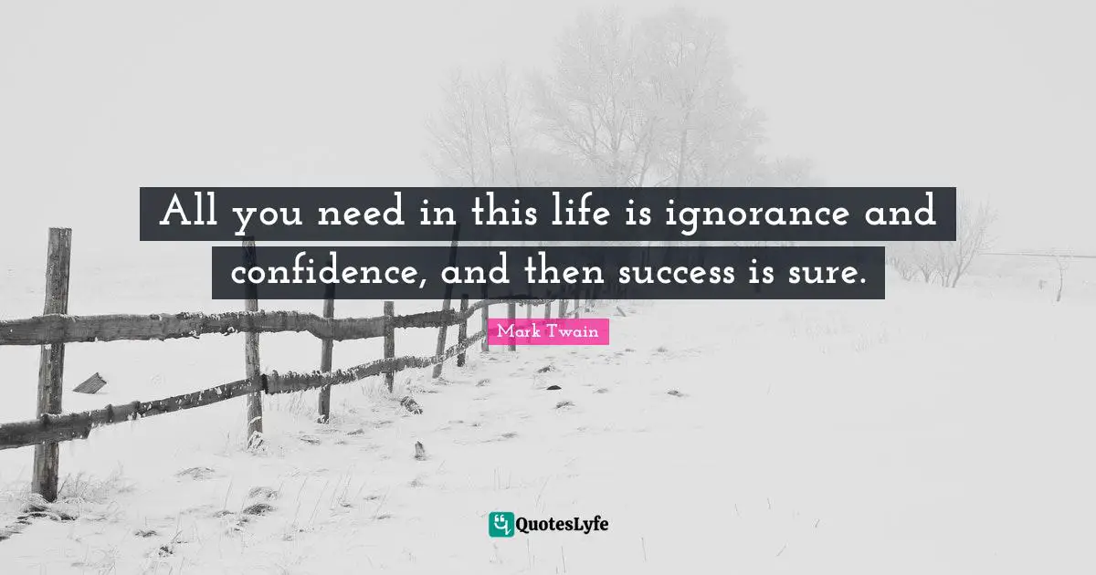 This page presents the quote "All you need in this life is ignorance and confidence, and then success is sure.". Author of this quote is Mark Twain. This quote is about confidence, success,.