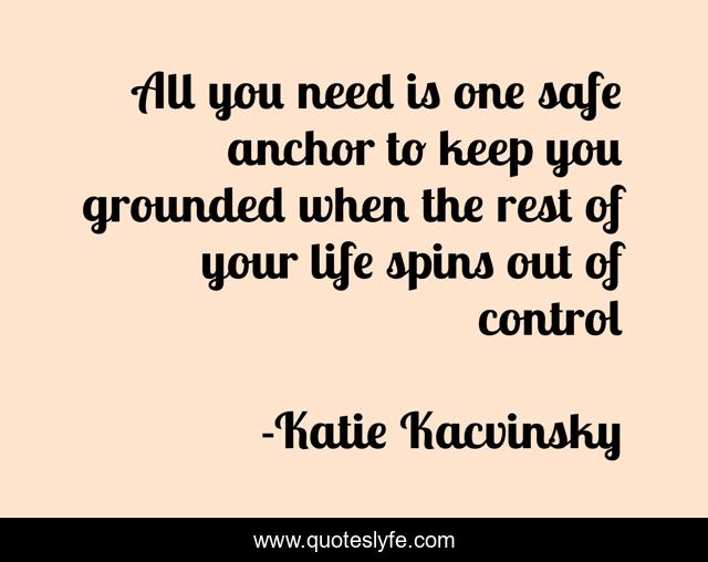 This page presents the quote "All you need is one safe anchor to keep you grounded when the rest of your life spins out of control". Author of this quote is Katie Kacvinsky. This quote is about loss, psychology, grief, counseling, psychotherapy, tragedy,.