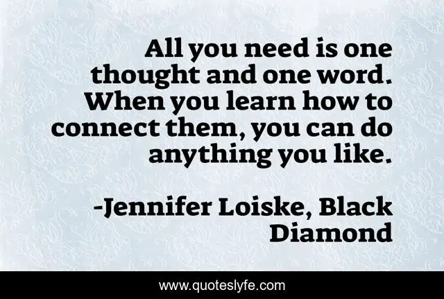 "Jennifer Loiske, Black Diamond Quotes." Quoteslyfe.com, 2025. Sun. 07 Dec. 2025. <https://www.quoteslyfe.com/quote/All-you-need-is-one-thought-and-228665>.
