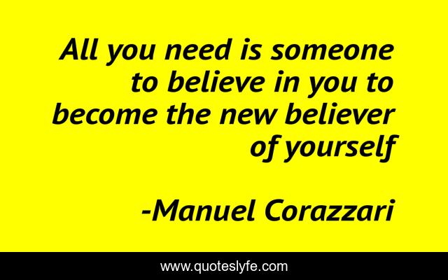 This page presents the quote "All you need is someone to believe in you to become the new believer of yourself". Author of this quote is Manuel Corazzari. This quote is about faith, believe, believer, vision,.