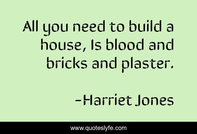 This page presents the quote "All you need to build a house, Is blood and bricks and plaster.". Author of this quote is Harriet Jones. This quote is about jones, harriet, woman, lady, mayflower,.
