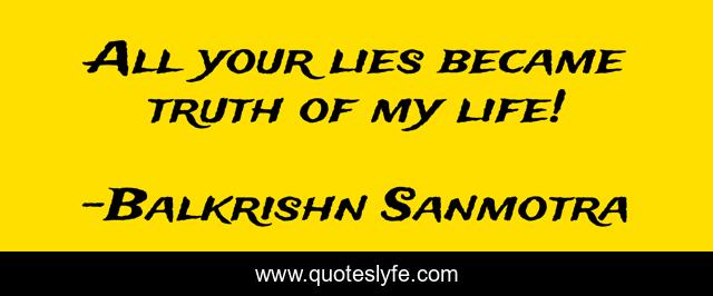"Balkrishn Sanmotra Quotes." Quoteslyfe.com, 2025. Sat. 06 Dec. 2025. <https://www.quoteslyfe.com/quote/All-your-lies-became-truth-of-my-198399>.