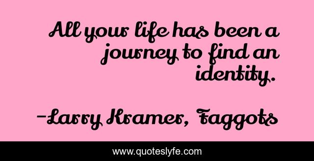 This page presents the quote "All your life has been a journey to find an identity.". Author of this quote is Larry Kramer, Faggots. .