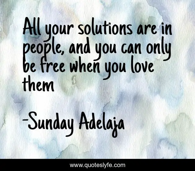 This page presents the quote "All your solutions are in people, and you can only be free when you love them". Author of this quote is Sunday Adelaja. This quote is about kingdom, life, love, destiny, serving-god, people, money, god, work,.