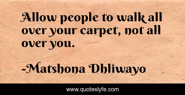 "Matshona Dhliwayo Quotes." Quoteslyfe.com, 2025. Sat. 06 Dec. 2025. <https://www.quoteslyfe.com/quote/Allow-people-to-walk-all-over-your-198839>.
