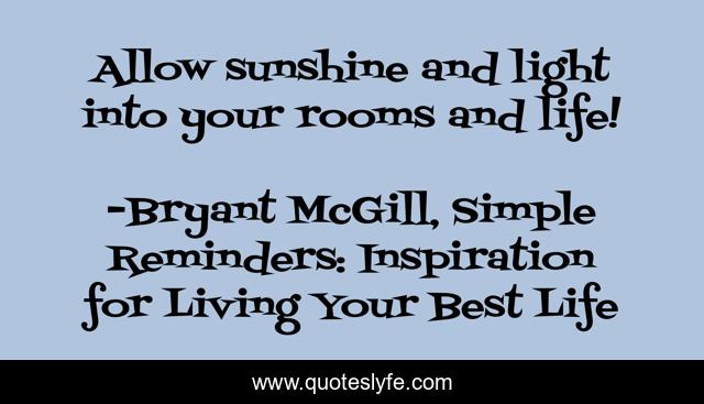 "Bryant McGill, Simple Reminders: Inspiration for Living Your Best Life Quotes." Quoteslyfe.com, 2025. Sat. 06 Dec. 2025. <https://www.quoteslyfe.com/quote/Allow-sunshine-and-light-into-your-rooms-198714>.