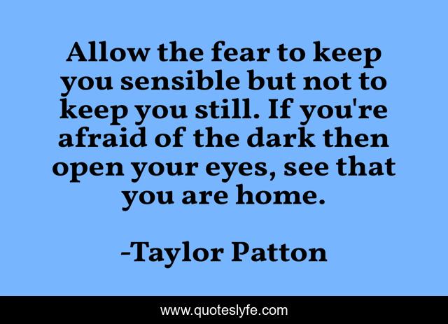 This page presents the quote "Allow the fear to keep you sensible but not to keep you still. If you're afraid of the dark then open your eyes, see that you are home.". Author of this quote is Taylor Patton. This quote is about sensible, cautious, love, home, fear, still, affection,.
