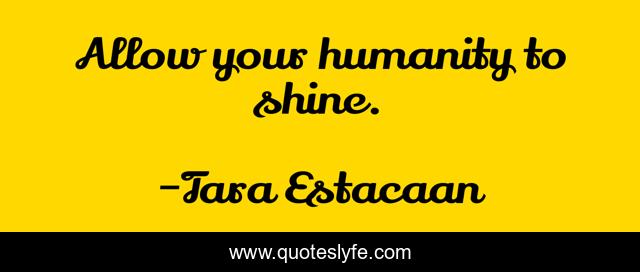 This page presents the quote "Allow your humanity to shine.". Author of this quote is Tara Estacaan. This quote is about kindness, love, humanity, affection,.