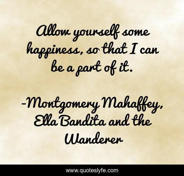 "Montgomery Mahaffey, Ella Bandita and the Wanderer Quotes." Quoteslyfe.com, 2025. Fri. 05 Dec. 2025. <https://www.quoteslyfe.com/quote/Allow-yourself-some-happiness-so-that-I-122948>.