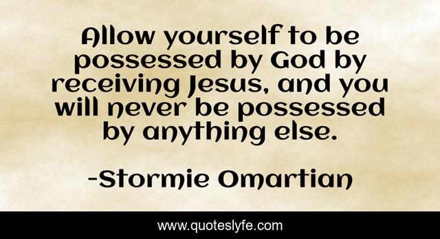 This page presents the quote "Allow yourself to be possessed by God by receiving Jesus, and you will never be possessed by anything else.". Author of this quote is Stormie Omartian. This quote is about motivation, christian, uplifting, powerful, encouraging, encouragement, jesus, spirituality, inspirational,.