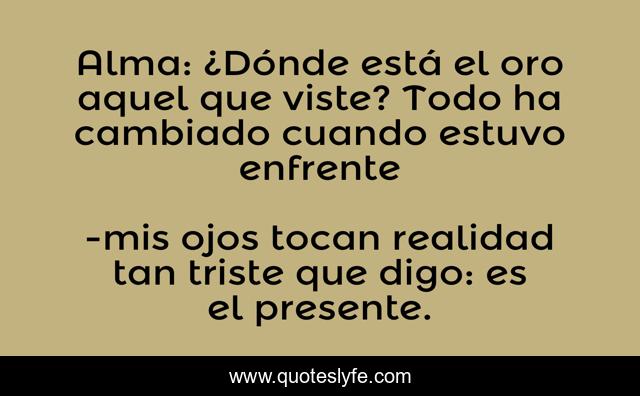 "mis ojos tocan realidad tan triste que digo: es el presente. Quotes." Quoteslyfe.com, 2025. Fri. 05 Dec. 2025. <https://www.quoteslyfe.com/quote/Alma-D-nde-est-el-oro-aquel-25351>.