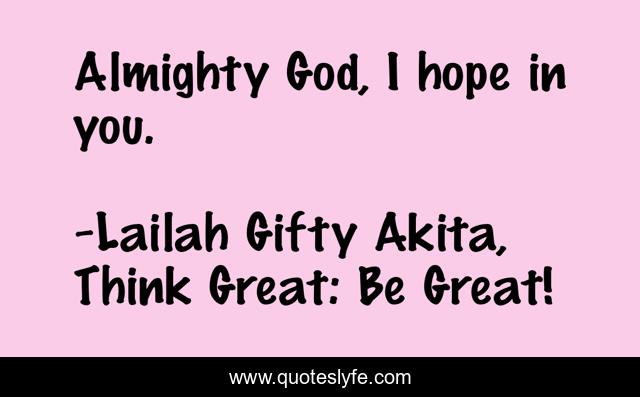 "Lailah Gifty Akita, Think Great: Be Great! Quotes." Quoteslyfe.com, 2025. Fri. 05 Dec. 2025. <https://www.quoteslyfe.com/quote/Almighty-God-I-hope-in-you-114918>.