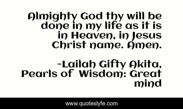 "Lailah Gifty Akita, Pearls of Wisdom: Great mind Quotes." Quoteslyfe.com, 2025. Sun. 07 Dec. 2025. <https://www.quoteslyfe.com/quote/Almighty-God-thy-will-be-done-in-107184>.