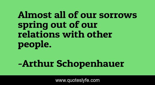 This page presents the quote "Almost all of our sorrows spring out of our relations with other people.". Author of this quote is Arthur Schopenhauer. This quote is about almost, spring, people,.