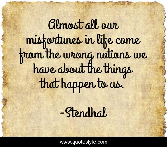 This page presents the quote "Almost all our misfortunes in life come from the wrong notions we have about the things that happen to us.". Author of this quote is Stendhal. .